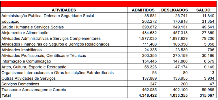 Movimentação do Emprego Celetista no Setor de Serviços do Estado de São Paulo